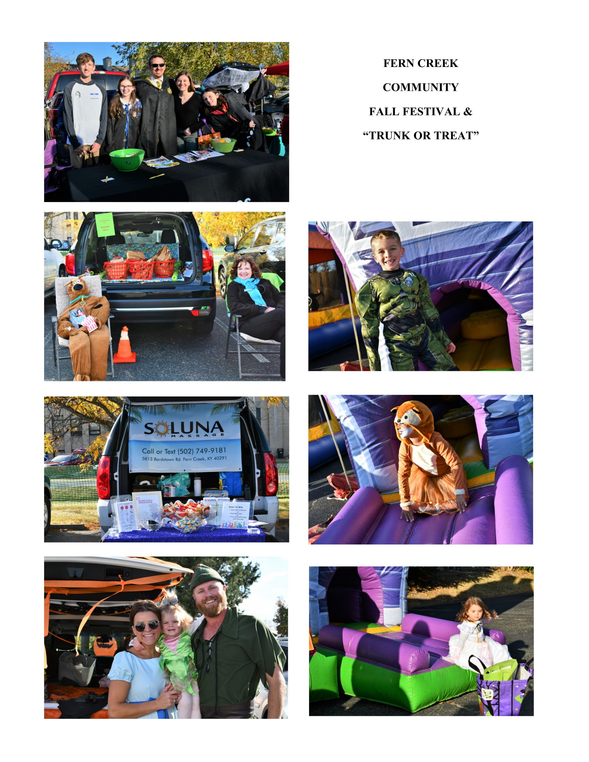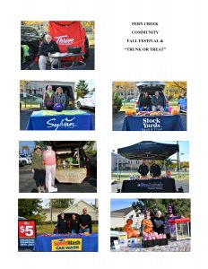 Now that Fall is upon us, we are excited to announce plans for the Community Fall Festival & Trunk or Treat! It will be held here at the FC Community Center and FCHS. This year, the festival is going to be co-hosted by FC Fire Protection District! It is a fun-filled family night of trick or treating, bounce houses, and all sorts of fun activities. Like in years past, we will have a fire truck from the FCFD and an LMPD Helicopter, a food truck, along with many other attractions!
